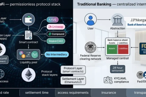 DeFi vs Traditional Banking is the financial comparison defining money in 2026 — not because decentralised finance has replaced banks, but because the line between them is eroding faster than anyone expected. Grayscale Research named 2026 “the dawn of the…
